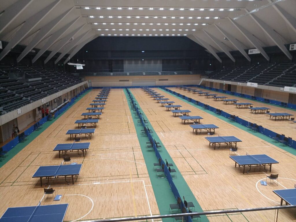 空き台があればいいんですけど、みんなちょっとでも試合前に練習したいので、すぐ台は埋まります。